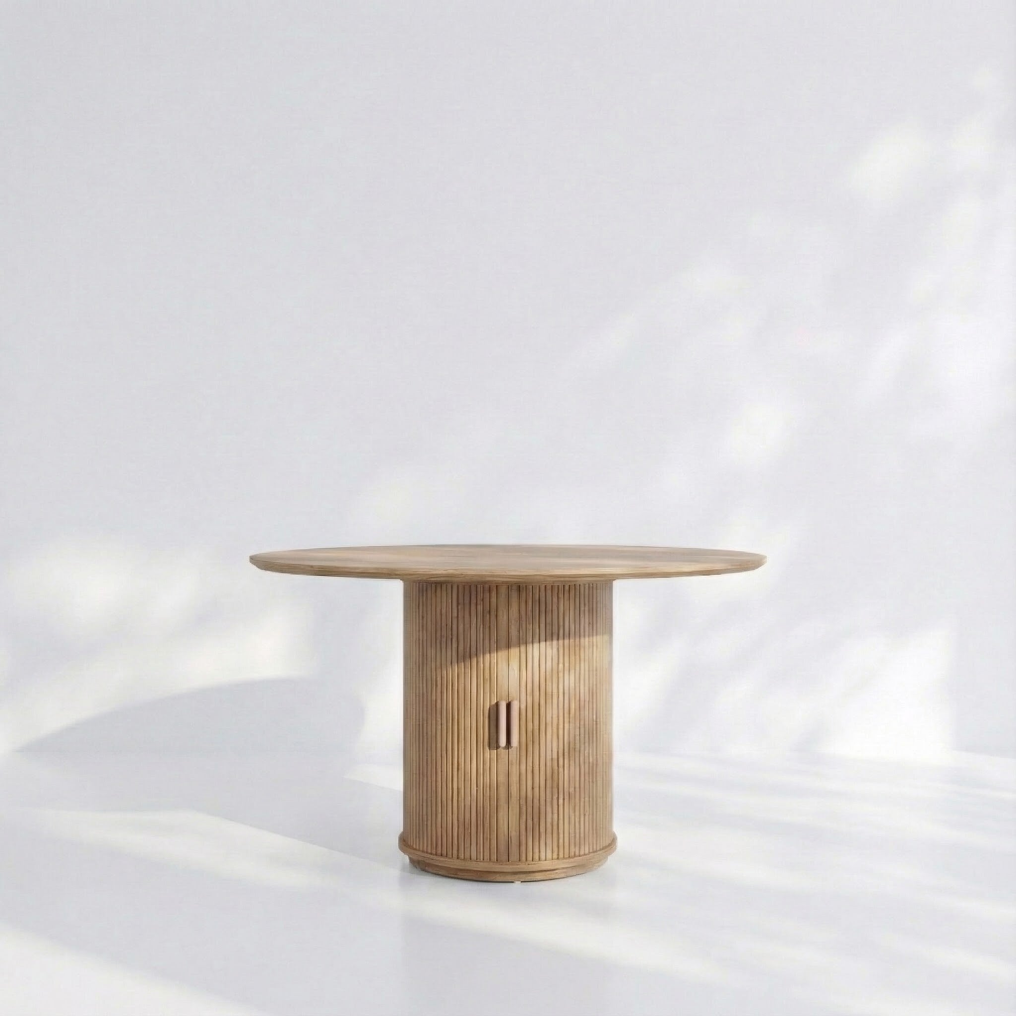 The Garda Round Dining Table brings soft luxury energy into your space with its warm ash wood vibe and sculptural base. The tambour storage is such a flex, giving you hidden compartments without ruining the aesthetic. It instantly makes your dining area feel more curated, more expensive, more you.